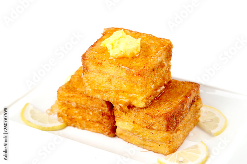 food, plate, toast, bread, meal, snack, white, breakfast, sweet, dessert, fried, isolated, cake, baked, cheese, lunch, pastry, dinner, closeup, dish, french, cooked, fish, sandwich, butter