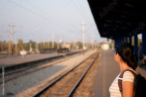 girl, waiting, train, station, lonely, day, shadow, traveling, vacation