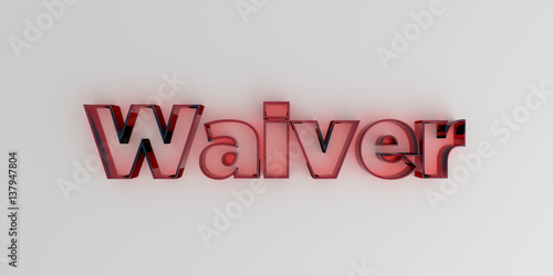 Waiver - Red glass text on white background - 3D rendered royalty free stock image.