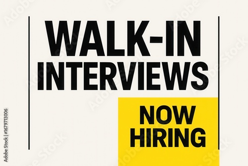 Walk-In Interviews NOW HIRING promotional banner, bold modern style, effective retail job offer announcement.