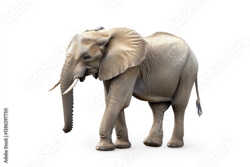 elephant, walking, isolated, white background, african, animal, mammal, wildlife, trunk, tusk, grey, large, powerful, herbivore, standing, single, specimen, full-length, half face, no people, ungulate, tropical, strength, skin, creature, nature, big, studio shot, artiodactyla, fauna, savanna, conservation, protection, education, zoology, safari, wild, africa