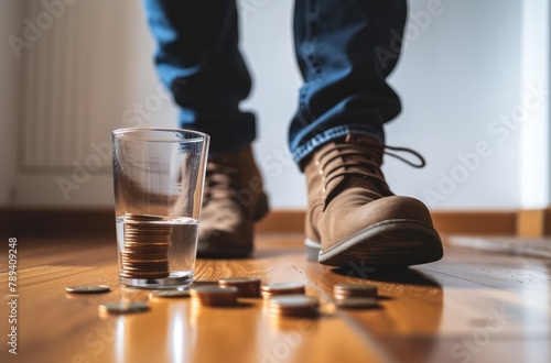 leaving, wooden floor, hydratation, casual clothes, home interior, parched, money concept, abandonment, personal finance, refreshment, casual attire