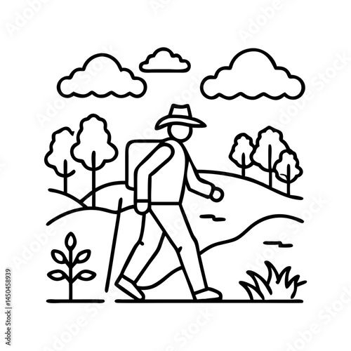 walking in the countryside icon, walking in the countryside line art - simple line art of walking in the countryside, perfect for walking in the countryside logos and icons