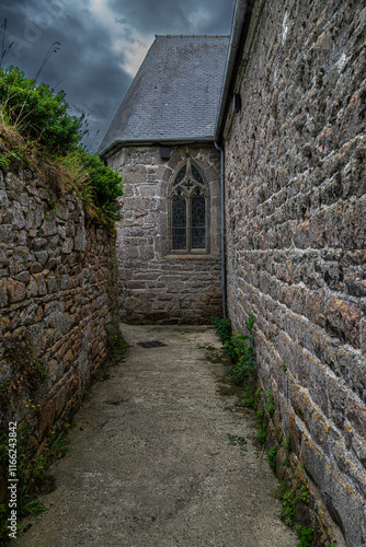 atlantic, brittany, rock, heaven, stone, land, tree, summer, feature, tight, island, church, building, coast, tide, nature, sea, old, village, path, countryside, france, heavy, mediaeval, architecture, street, garden, house, blue, boat, rose, lowland, flower, europa, green, tip, outdoors, wall, colours, rocky