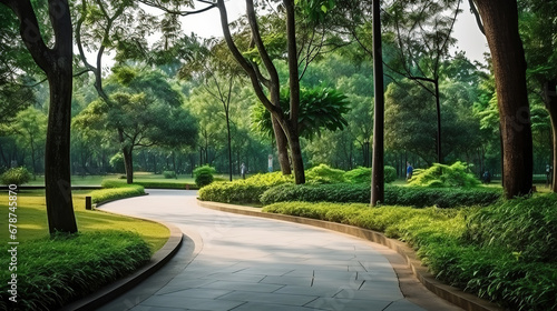 Walkway pathway in public park. Trail track in natural park for relaxing, walking, running