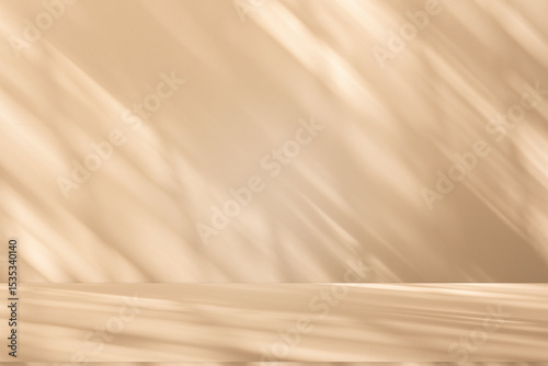 Wall interior background, studio and backdrops show products. with leaf shadow from window color beige and white. background for text insertion and presentation of product