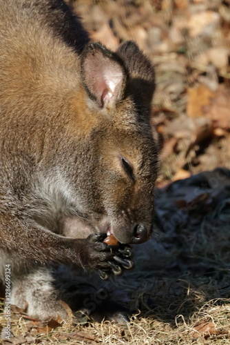 wallaby eating acorn