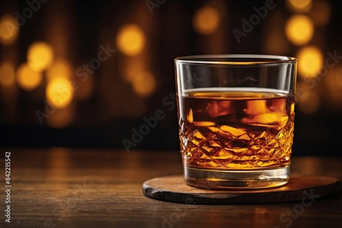 Warm Amber Glow: a tumbler glass filled with Scotch, showcasing its rich amber color.