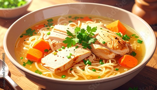 Warm and Comforting Chicken Noodle Soup in a Bowl.