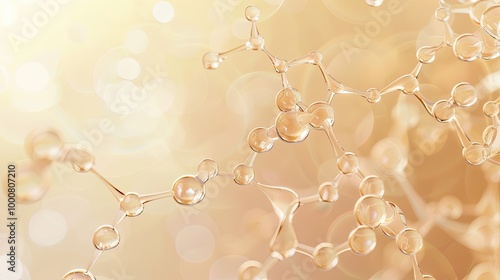 Warm beige backdrop with a 3D lattice of glass molecules creating a sophisticated scientific look