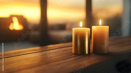 Warm candle glow illuminates a serene space, creating a cozy and inviting atmosphere at sunset.