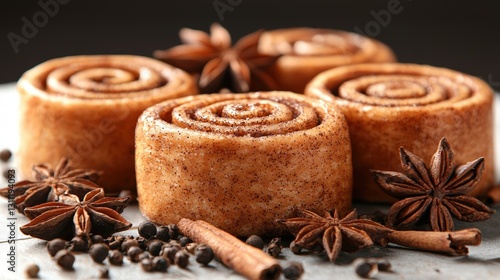 Warm cinnamon rolls generously topped with cinnamon and star anise evoking comfort and delight