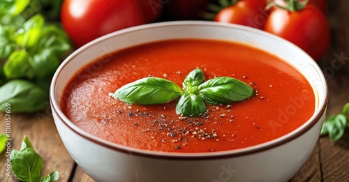 Warm Comforting Bowl of Creamy Tomato Soup. AI generated illustration.
