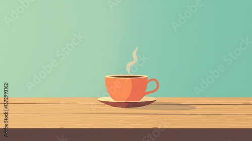 hot drink, cup, hot, drink, morning, breakfast, table, wooden, tea, hot beverage, afternoon, lunch, relaxing, brew, steam, warm, delicious, smooth, comforting, flavorful, caffeine, energy, energizing, hot drink, relaxation, enjoy, simple, minimalist, design, illustration, flat, pastel, background, light, colours, fresh, warmth, wooden table, light brown, orange, white, saucer