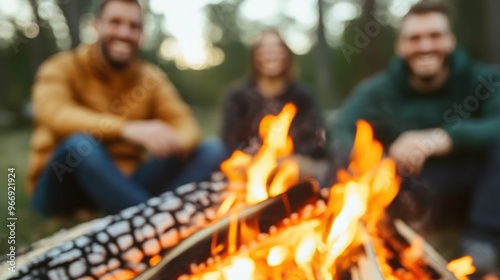 Warm Glow of Campfire Illuminates Heartwarming Gathering of Friends Sharing Laughter Stories and Joyful Camaraderie in the Serene Outdoor Setting