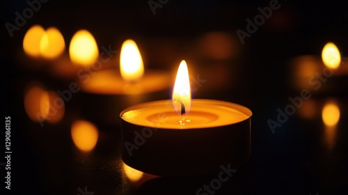 Warm glowing candlelight in darkness - reflective and peaceful ambiance Armenian Genocide Remembrance Day.