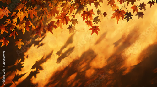 warm, gold, light, fall, wall, shadow, fallen, maple, tree, leaf, natural, fall, colours, glow, illustration