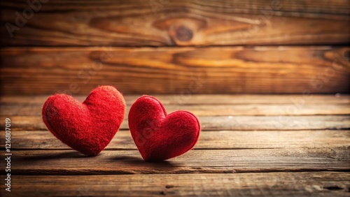 Warm red hearts on wooden background with subtle texture, still life, cozy, still life, cozy,valentines day decor