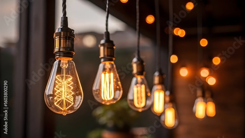 Warm Vintage Edison Bulb Lights, Cozy Interior Decor Photography