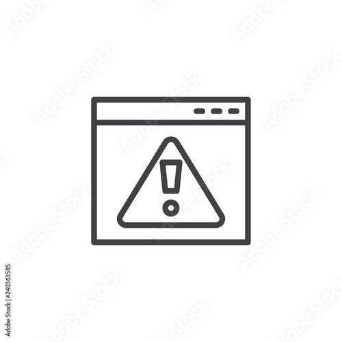 warning, browser, alert, website, window, icon, line, outline, linear, vector, logotype, pictogram, stroke, symbol, signs, web, design, illustration, single, editable, graphic, simple, pixel, honed, exclamation, cyberspace, error, computer, security, danger, message, caution, problem, safety, page, stop, bankruptcy, attention, information, damage, mark, triangle, secure, access