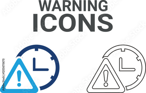 Warning icon. Timer, alarm, schedule, hourglass, clock icons. Solid icon collection.