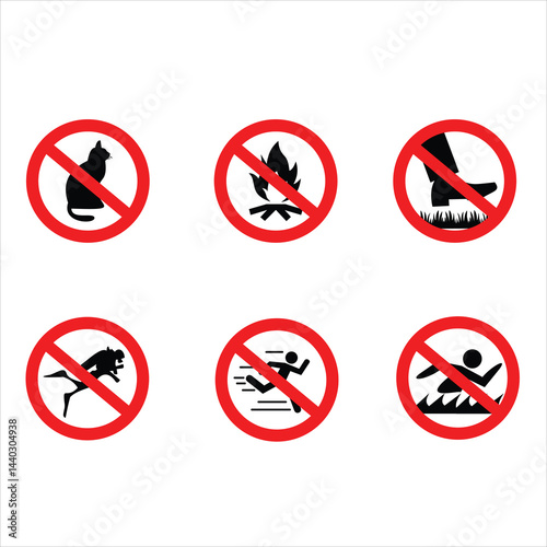 signs, no, icon, forbidden, symbol, warning, stop, ban, prohibited, danger, smoking, vector, set, red, cigarette, non, prohibition, illustration, dog, food, fire, car, phone, circle, alcohol, running, diving, cat, swimming