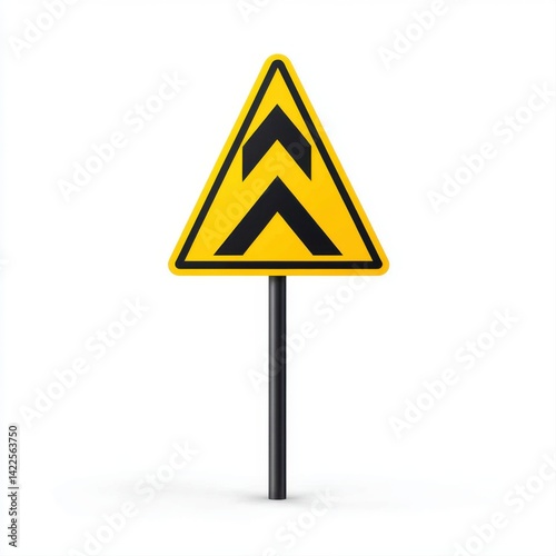 Warning Sign for Road Curves with Two Black Arrows Pointing Up on Yellow Background