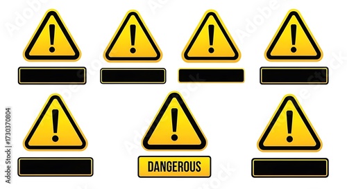 warning, safety, danger, caution, industrial, construction, yellow, triangle, exclamation, signs, symbol, black, text, message, area, hazard, attention, security, prevention, protection, manufacturing, logistic, transportation, equipment, maintenance, repair