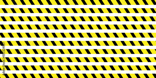 Warning tape with yellow and black diagonal stripes. Seamless line stop warning. Yellow and black warning tape border. road markings