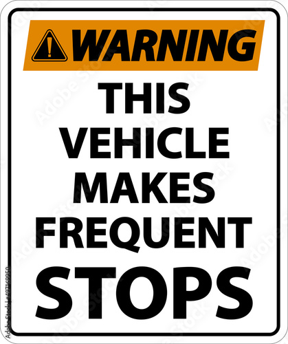 Warning This Vehicle Makes Frequent Stops Label On White Background