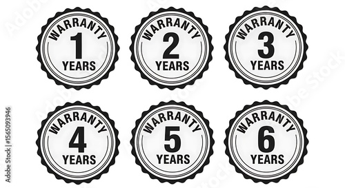 guarantee, seal, badge, circle, year, 1, 2, three, 4, 5, 6, black, white, text, graphic, design, symbol, guarantee, assurance, protection, product, service, certification, endorsement, quality, trust, dependability, business, commercial, legal, agreements, contract, document, label, stamp, emblem, insignia, icon
