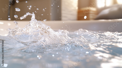wash hair Gentle water splashes in a serene indoor setting, creating a peaceful ambiance with soft lighting and a tranquil atmosphere.