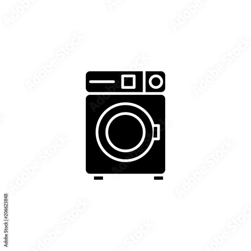 Washing machine black icon concept. Washing machine flat vector symbol, sign, illustration.
