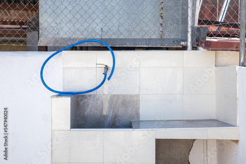water, disposal, wall, door, building, architecture, garage, window, blue, metallic, home, forest, gate, house, exterior, white, industrial, aged, glasses, street, urban, construction, entry, brick, stock, red, veneer