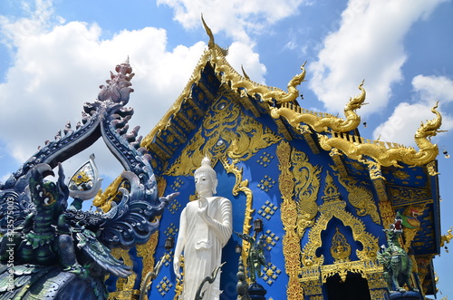 temple, travel, asia, tour tourism, buddhism, religion, beautiful, buddha, culture, siam, art, thai, wat, asian, old, traditional, sculpture, religious, pagoda, building, landmark, architecture, sky, famous, ancient, buddhist, heritage, historic, palace, history, landscape, view, gold, worship, blue, rai, gold, white, style, spirituality