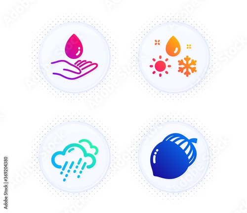 icon, gradient, buttons, weather, rainy weather, acorn, nature, purity, symbol, vector, quality, climate, eco, rain, cloudy, signs, winter, temperature, clean, pure, agriculture, dripped, water, seed, wet, sky, rainy, sunny, summer, hand, natural, liquid, season, meteorology, cloud, oak, tree, illustration, sun, refreshment, simple, cold, water, set, halftone, pattern, dot