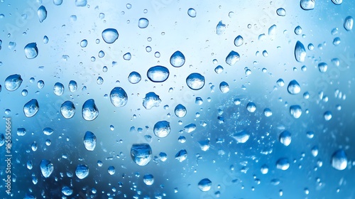 Water Drops, Rain, Dew on Blue Background, Abstract Image, Texture, Pattern, Wallpaper, Cover and Screen of Smartphone, PC, Laptop, 9:16 and 16:9 Format