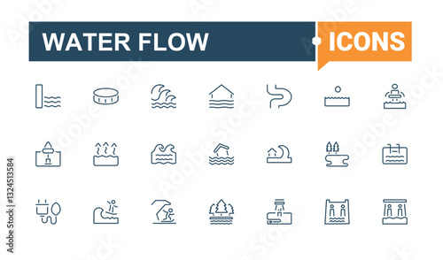 Water Flow line icons. Contains related to wave, ocean, sea, surf, water, drop, drink and more. Wave icon set. Web icons. Editable vector icon.