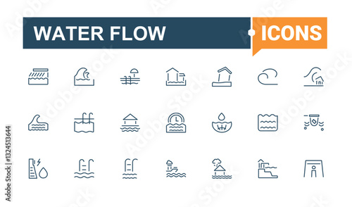 Water Flow line icons. Contains related to wave, ocean, sea, surf, water, drop, drink and more. Wave icon set. Web icons. Editable vector icon.