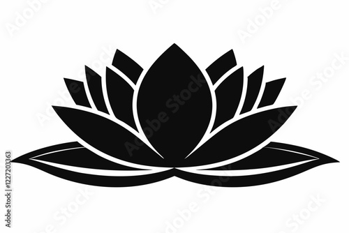 Water Lotus Flower with Continuous Line Art Leaf Silhouette - Elegant Vector Icon on white background.