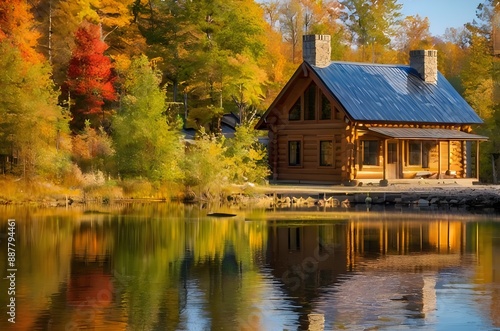 water, lake, house, autumn, landscape, river, tree, nature, duck pond, forest, architecture, rural, fall, park, sky, building, summer, mill, tree, wood, travel, bungalow, green, country