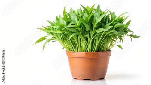 water spinach leaves isolated on white background, green leafy vegetable growing in a pot