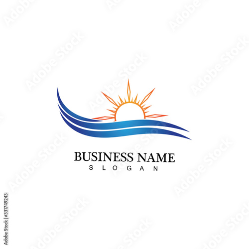 Water wave and sun icon vector illustration design logo