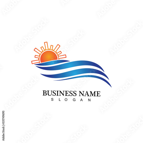 Water wave and sun icon vector illustration design logo