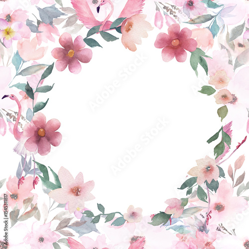 Watercolor wreath with flowers. Hand drawn floral isolated illustration on white background.