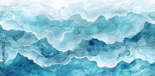 watercolor abstract modern background with a mesmerizing turquoise wave pattern, with intricate water textures and varying shades of light and dark turquoise