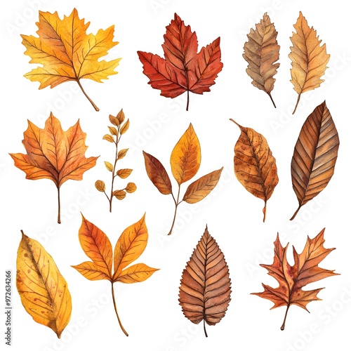 Watercolor Autumn Leaves Collection Orange Yellow Brown Fall Foliage