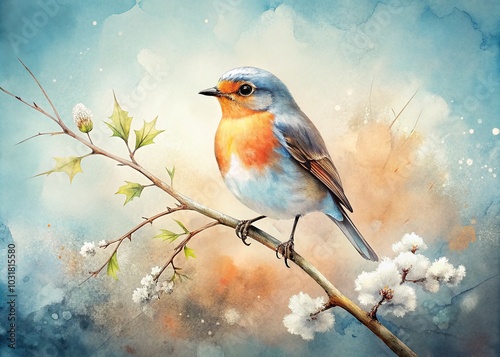 watercolor, bird, tree branch, minimalist, grunge background, nature, artistic, wildlife, home decor, serene, tranquil, modern art, illustration, avian, natural beauty, environmentally friendly, aesthetic, simplicity, harmony, foliage, tree branch, watercolor, print, contemporary, birding, vivid colors, peaceful, elegant, tranquil scene