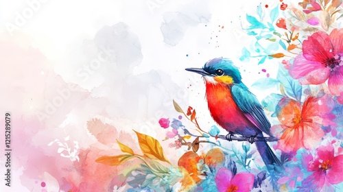 Watercolor Bird Painting: Vibrant Colors and Floral Beauty