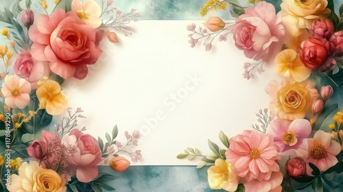 greeting card, template, watercolor, floral, blank, frame, holiday, copy space, flower, romantic, botanical, beautiful, colourful, rose, border, card, rose, love, pink, flower, vector, nature, wedding, valentine, nubes, leaf, design, illustration, day, bouquet, decoration, red, banner, pattern, plant